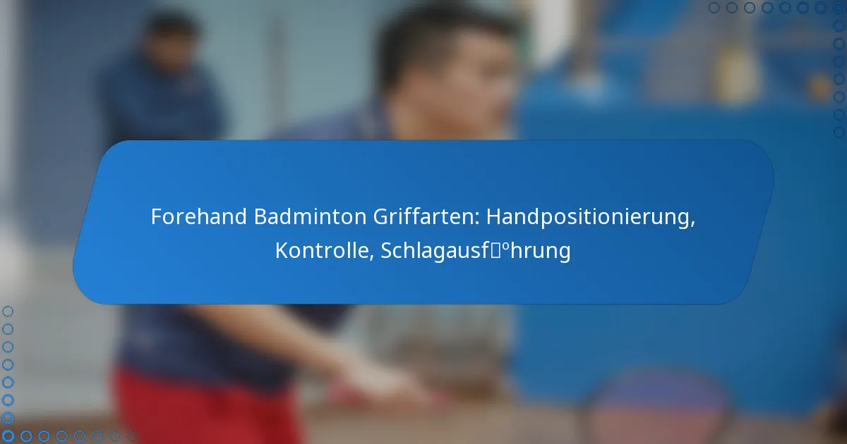 Um Schläge mit Vorhandgriffen im Badminton effektiv auszuführen, konzentrieren Sie sich auf die richtige Handpositionierung, Techniken zur Schlagkontrolle und klare Ausführungsstrategien. Das Beherrschen dieser Elemente wird Ihre Leistung und Konsistenz während des Spiels verbessern.